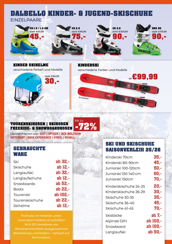 Riesenauswahl, bekannt bei allen Sportlern im Mühlviertel, besonders für Schi und Rad, sponsert auch unsere Schiunion, Filiale auch in Schöneben. Sehr persönliche Betreuung.  Friedbert Sitter